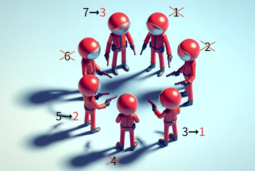假設今天喊到2的人都要被處死,共有6個人,輪流喊「1!」「2!」