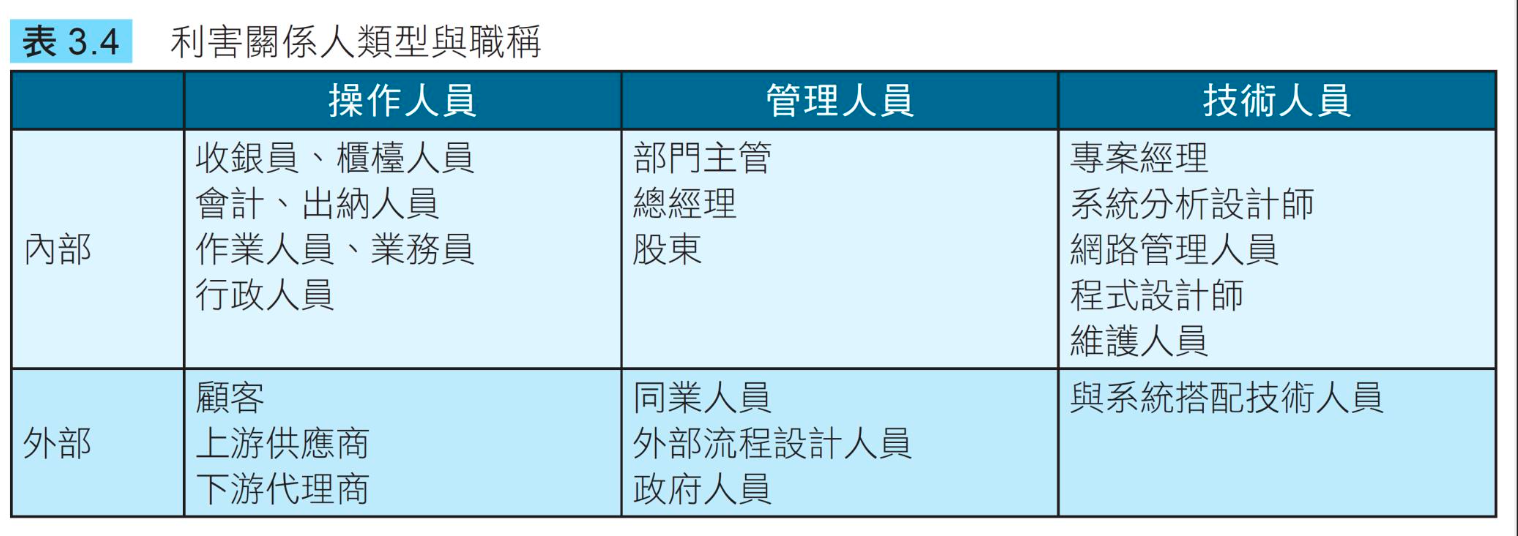 難處:系統發展初期,使用者通常是提出需求的部門主管,不會明確告知誰是這個系統的利害關係人