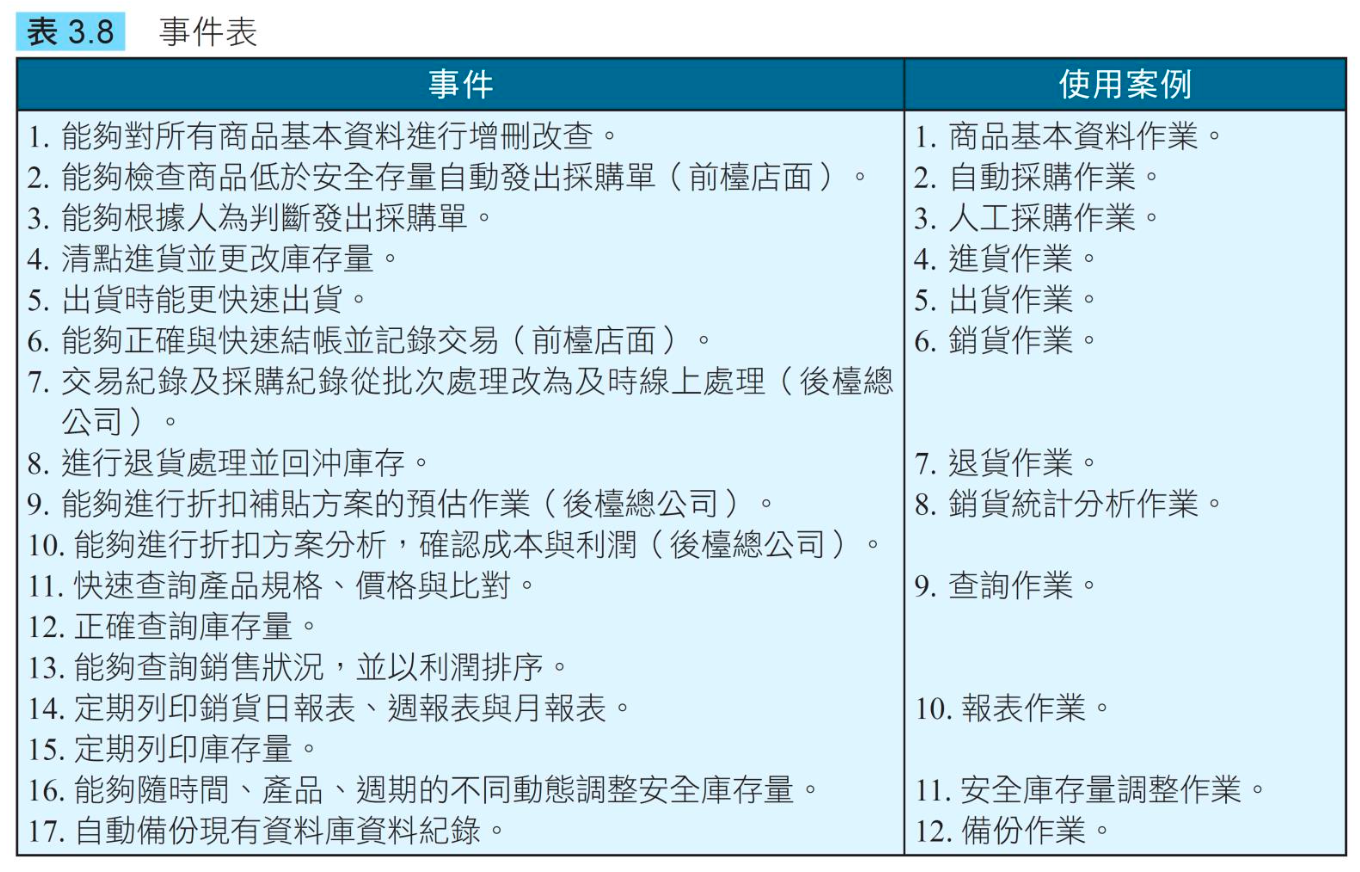 功能需求: 企業每天運作的流程,亦即系統所要完成的主要工作
