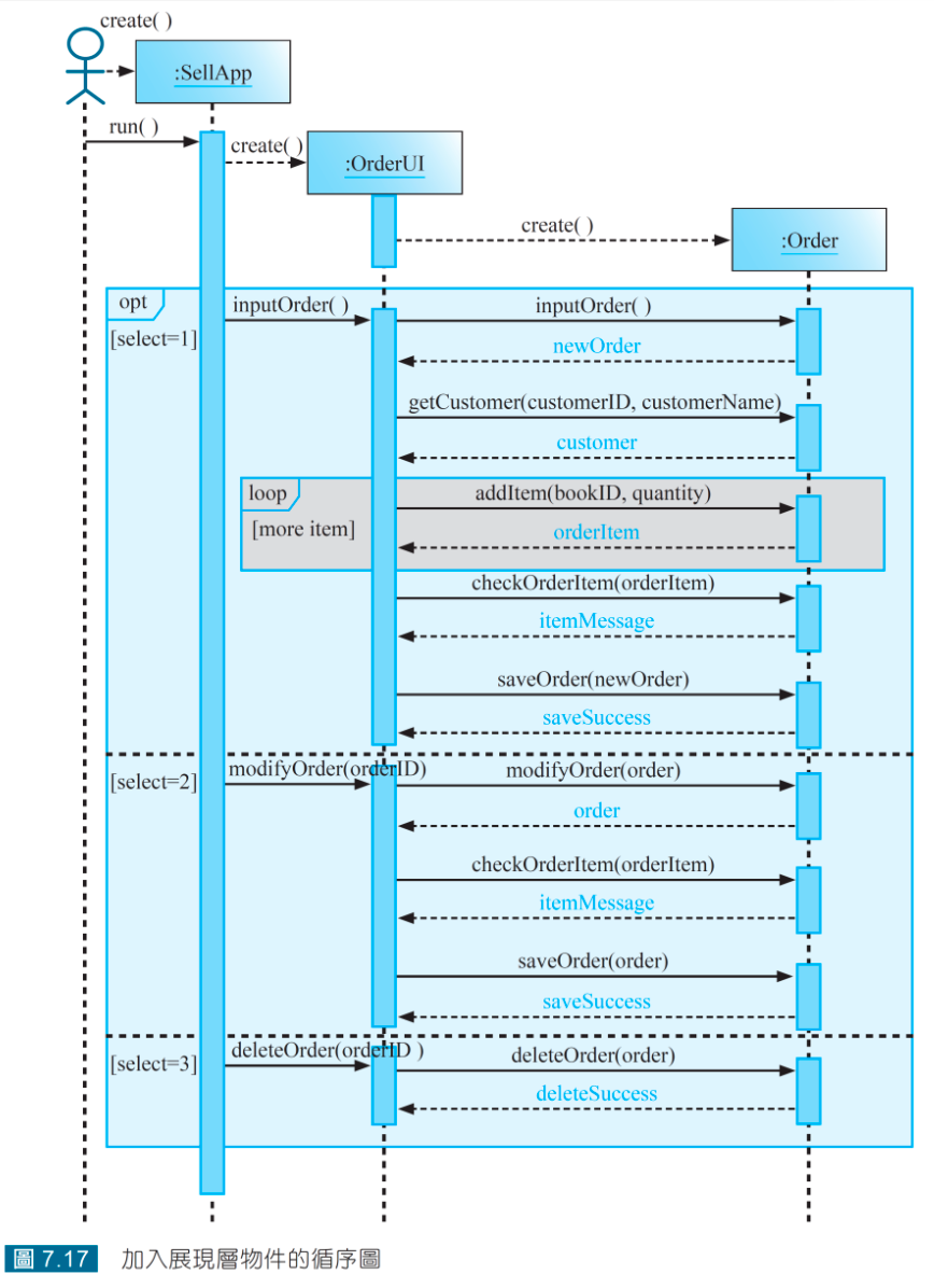 設計循序圖 他不認為定義展現層和資料存取層在最後一步做,他覺得應該是在二、