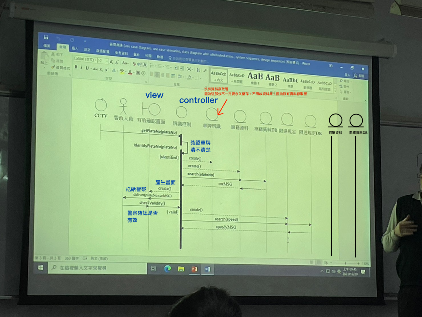我們根據目標相關的利害關係人的目標,找出系統功能,畫了使用案例圖,把情節做了說明,根據情節的說明,把系統會用到的資料寫道類別圖,根據使用案例敘述,除了把系統弄清楚之外,也把系統事件找出來,在根據系統事件畫出系統情境圖。