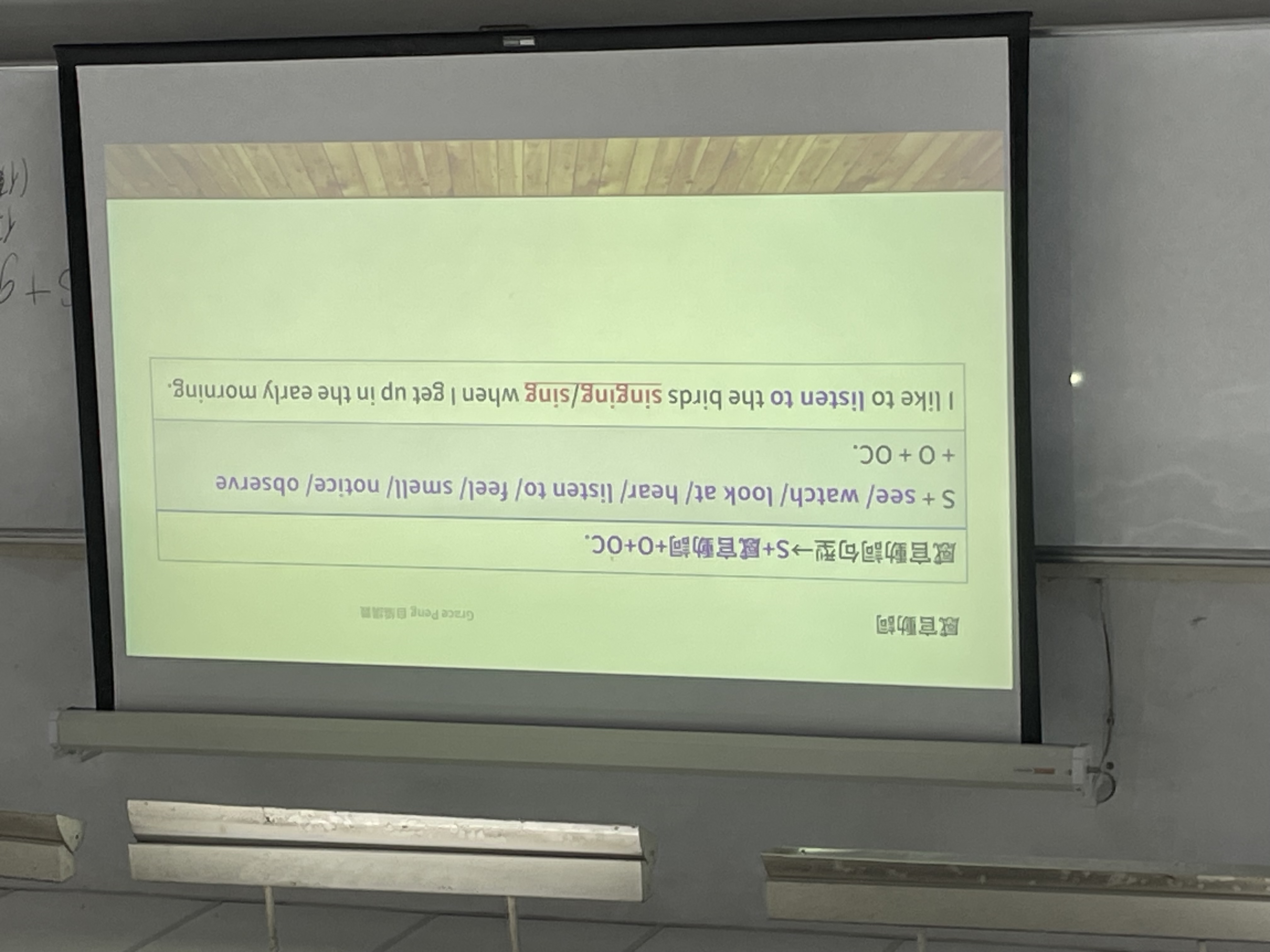 最後一題最難,因為他是被帶出去的,所以會是被動的狀態 感官動詞在考試選項中sing 或 singing不會同時出現,如果你看到sing的部分,就是我從頭到尾看到,singing可能就是當下看到