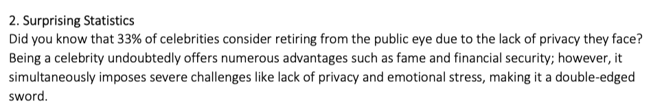 Did you know that 69% of the population live a happy life? 後面可以接In fact,…